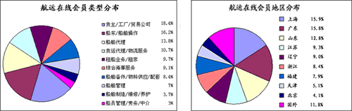 Vip.sol.com.cn)是航運在線全部會員企業的資料數據庫。為了方便會員企業之間的溝通聯系,我們按照企業類型劃分了船舶相關企業、貨物相關企業、綜合海事服務等四個大類二十五個小類,其中船舶相關企業所占比重最大;從地區上來看,這些會員企業主要分布在國內各大港口城市以及世界主要航運國家,其中沿海省份占比超過75%,國外會員企業約占11.8%,其余地區約占10%,以下是具體分布示意圖: